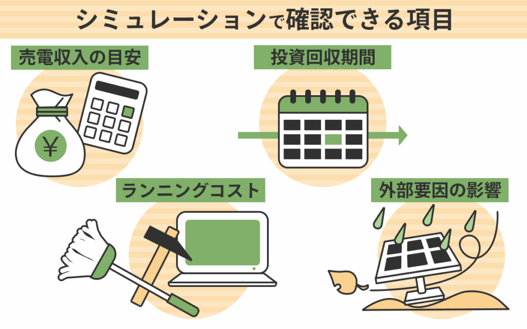 実際の収益は気象条件や経年劣化によって変動しますが、シミュレーションを活用すれば将来の見通しを具体的に描けるでしょう。気象変動や設備の劣化リスクを加味して計画を立てることも重要です。